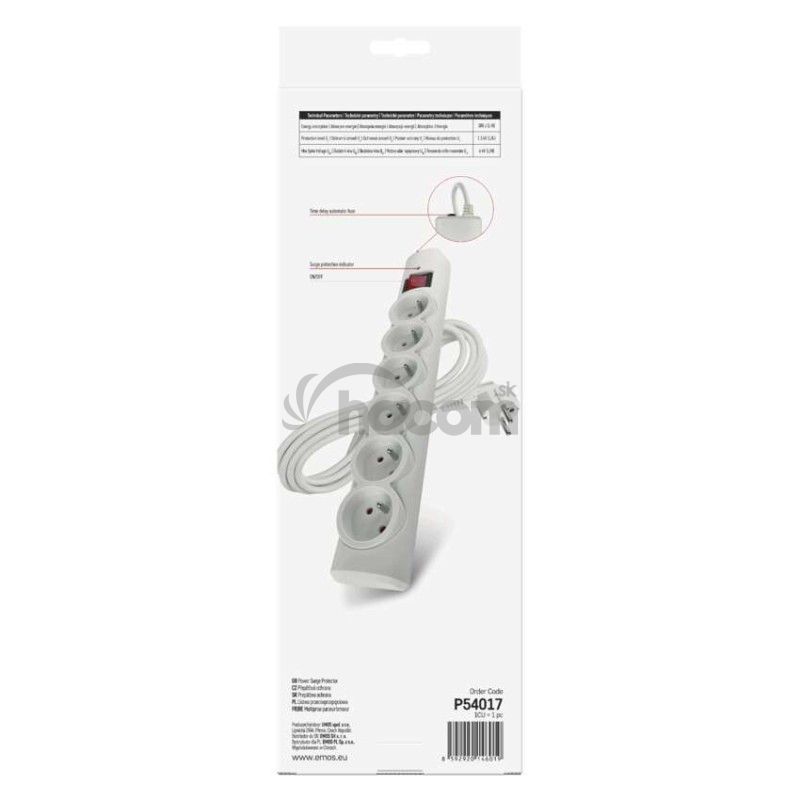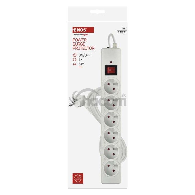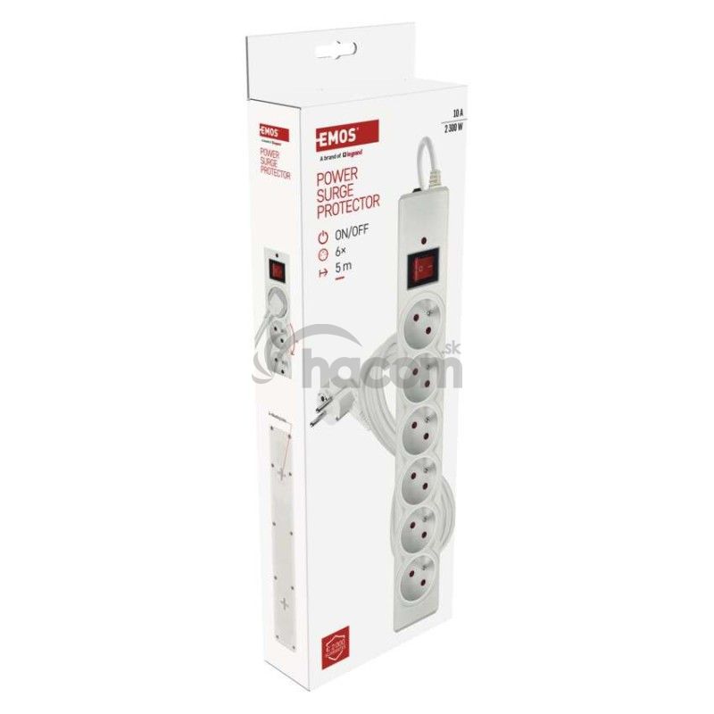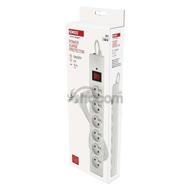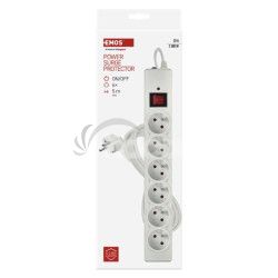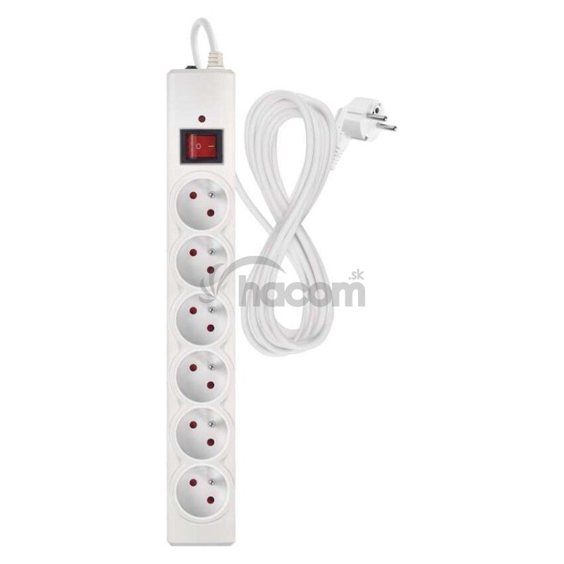 Prepäťová ochrana – 6 zásuviek, 5 m, biela P54017
