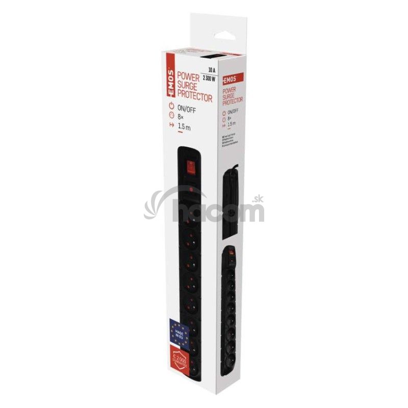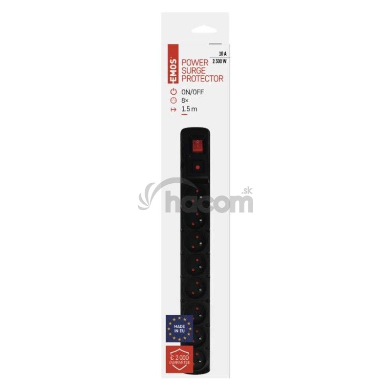 Prepäťová ochrana – 8 zásuviek, 1,5m, čierna P53899