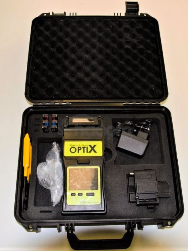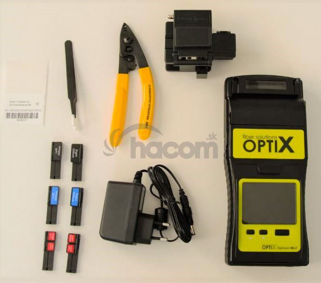 * Balení obsahuje kufr, svářečku, lámačku, stripovací kleště, napájecí adaptér a držáky optických kabelů (250 a 900 µm a loose tube)