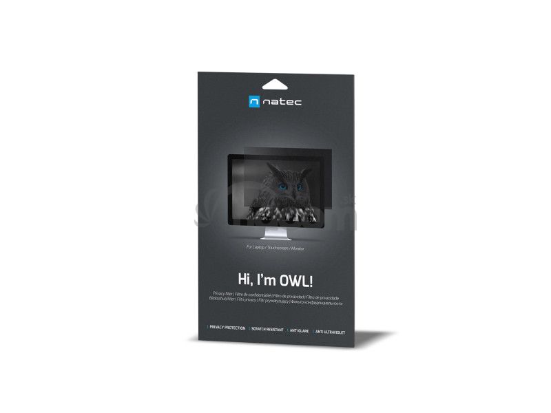 Zoznámte sa s Natec OwlFilter na ochranu súkromia Natec Owl je nenápadný prekryvný prvok na obrazovku notebooku alebo monitora počítača. Plní dôležitú funkciu zabezpečenia osobných a dôverných údajov. Filter je k dispozícii v mnohých veľkostiach: 13,3", 14", 15,6", 21,5", 23,8", 24", 27".