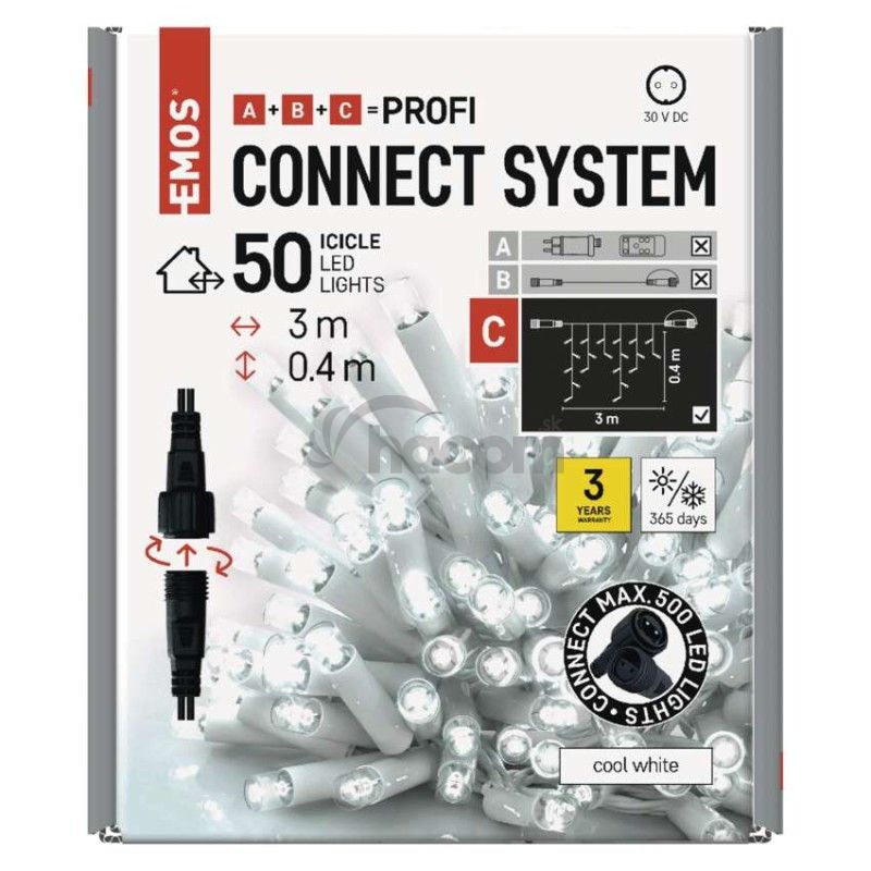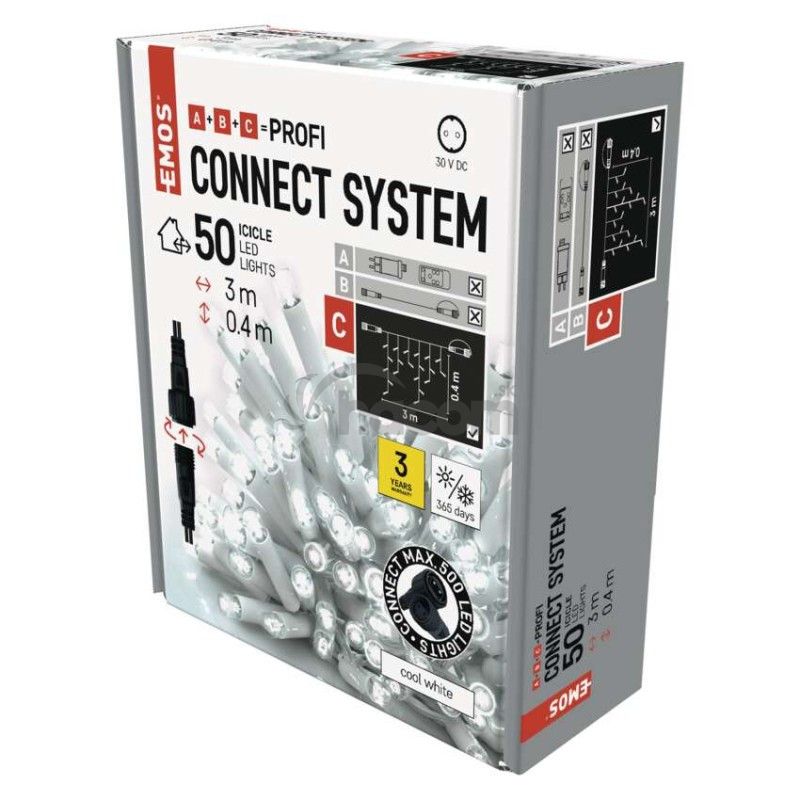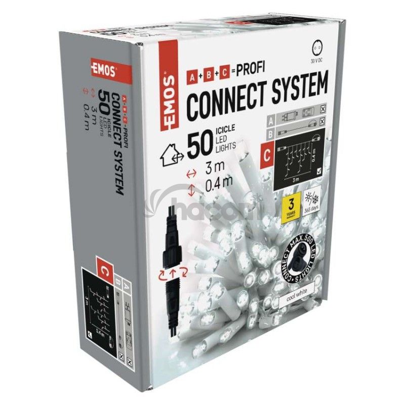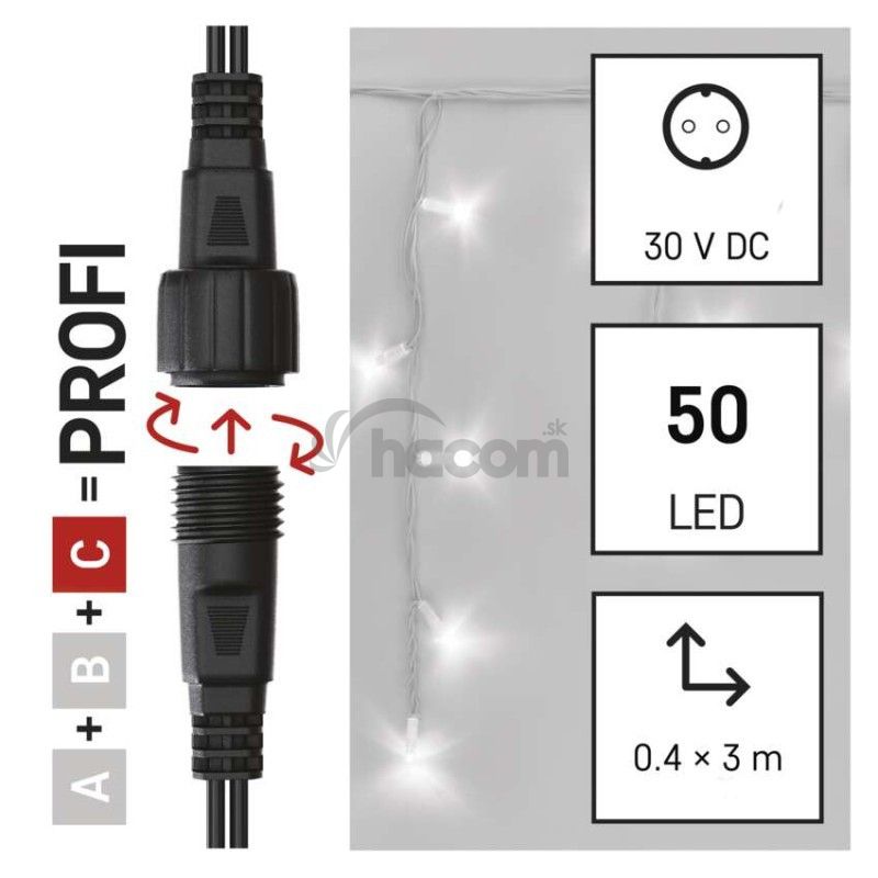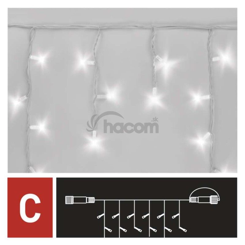 - Profi LED spojovacia reťaz biela – cencúle, 3 m, vonkajšia, studená biela D2CC02