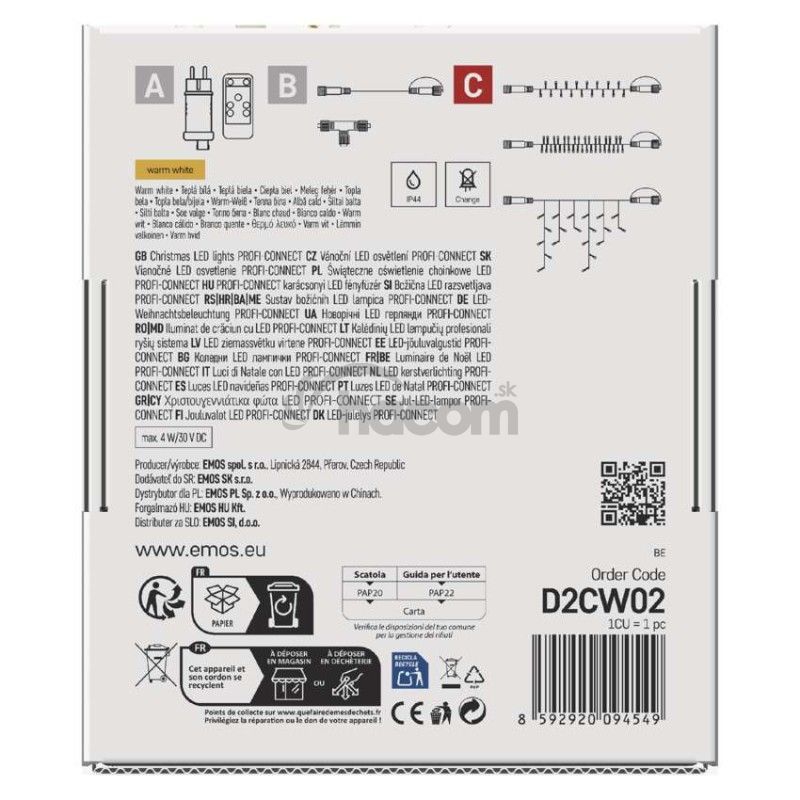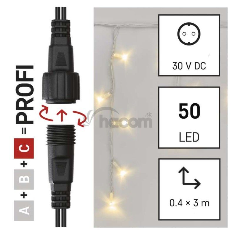 - Profi LED spojovacia reťaz biela – cencúle, 3 m, vonkajšia, teplá biela D2CW02