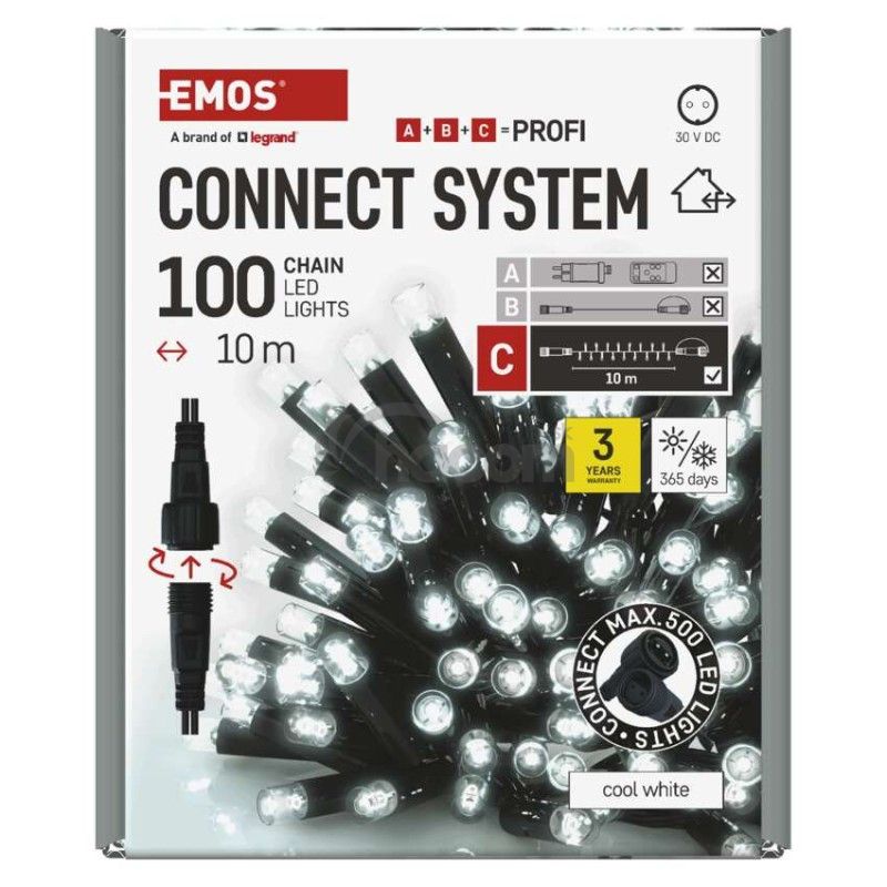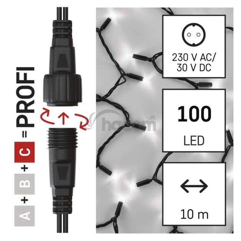 - Profi LED spojovacia reťaz čierna, 10 m, vonkajšia aj vnútorná, studená biela D2AC04