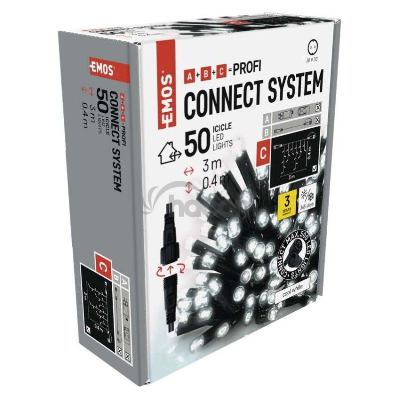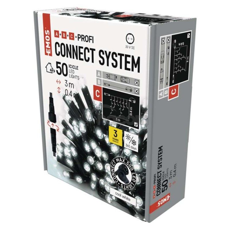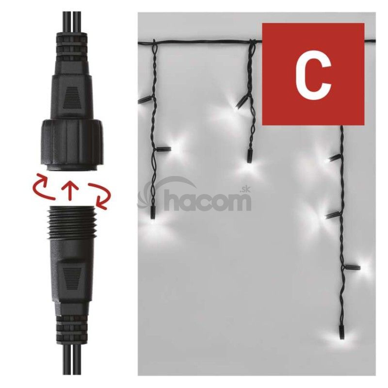 - Profi LED spojovacia reťaz čierna – cencúle, 3 m, vonkajšia, studená biela D2CC01