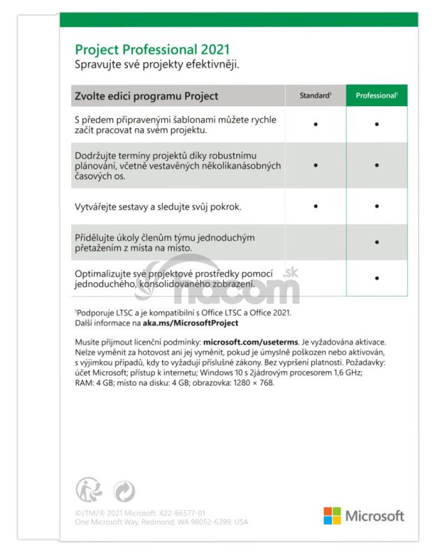 Project Professional 2021 Win CZ - Výkonné funkcie zjednodušujú riadenie projektov• Vedenie projektov správnym smerom pomocou integrovaných šablón