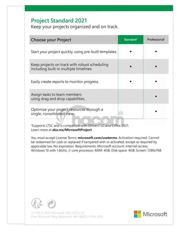 Project Standard 2021 Win CZ - Efektívnejšie riadenie projektov• Vedenie projektov správnym smerom pomocou integrovaných šablón