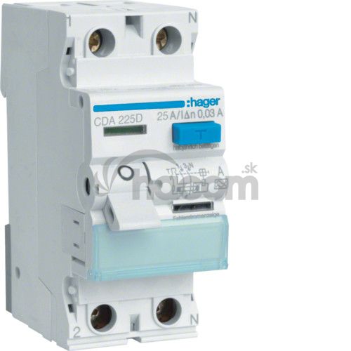 Prúdový chránič, 2P, 25A, 30mA, 6kA CDA225D