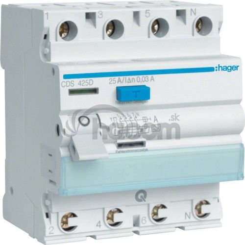 - Prúdový chránič 4pól. 25A 30mA Hager CDA425D