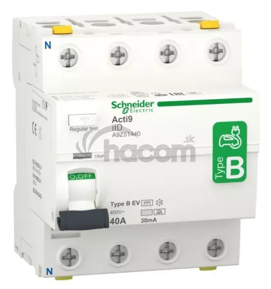 - Prúdový chránič MID, 4P, 40A, 30mA, typ B EV A9Z51440