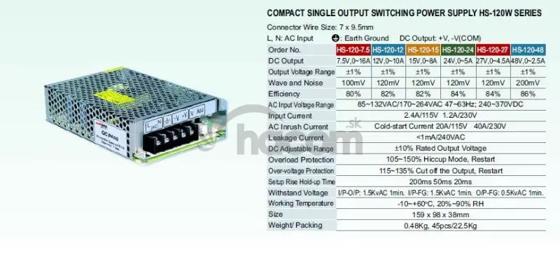 - Průmyslový zdroj Carspa 12V=/120W spínaný HS-120/12 HS-120-12