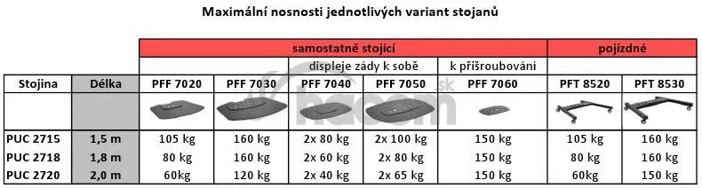 2. Zvoľte dĺžku stojiny (1,5m PUC2715, 1,8 PUC 2718, 2m PUC2720)