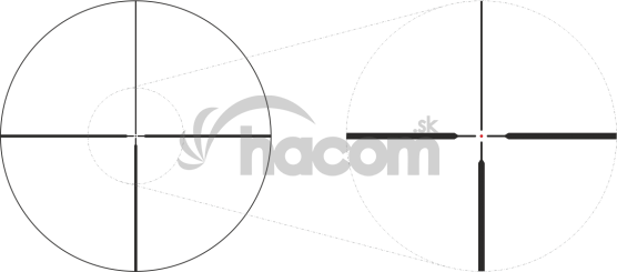 ![]() | Zámerná osnova so svetelným bodom Kríž zameriavača Jaeger je umiestnený v druhej (zadnej) ohniskovej rovine a tak nedochádza k zmene veľkosti kríža a tým aj zbytočne veľkému zakrytiu krížom cieľa pri väčších zväčšeniach. Pre lepšie zameranie kríž má v centre svetelný bod, ktorého regulácia jasu má široký rozsah intenzít tak, aby pokryla bežné svetelné podmienky použitia puškohľadu. Pre rýchle zapnutie alebo výpnutie bodu ovládač má medzipolohy so stavom „vypnuté“. |