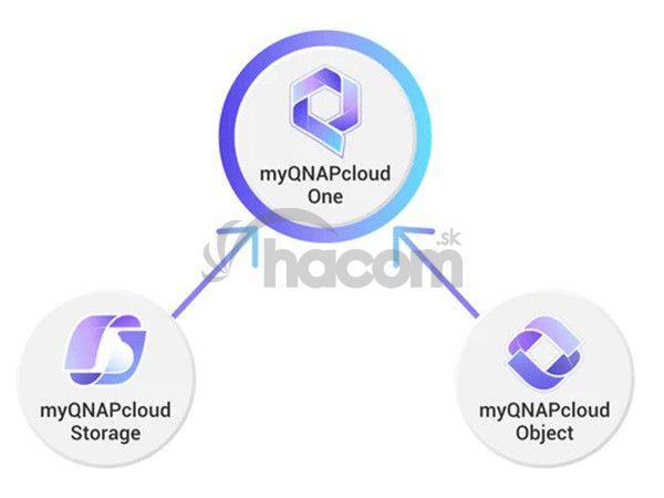 * myQNAPcloud One - bezproblémovo integrovaný s aplikáciami QNAP, ako sú Hybrid Backup Sync, HybridMount, Hybrid Backup Center - je určený pre užívateľov, ktorí vyžadujú ako tradičné cloudové úložisko, tak aj objektové úložisko S3