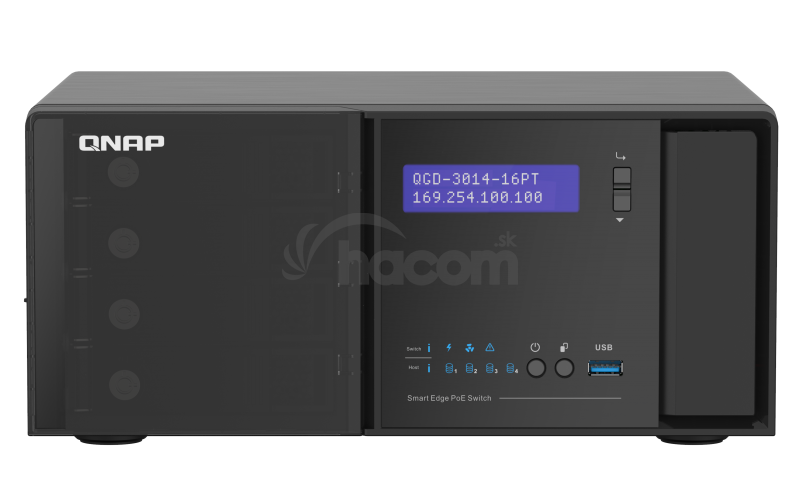 QNAP riadený switch QGD-3014-16PT-8G (16x GbE PoE+, 4core CPU, 4x SATA, 8GB RAM, 2x HDMI, 3x USB) QGD-3014-16PT-8G