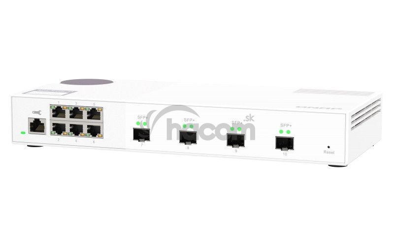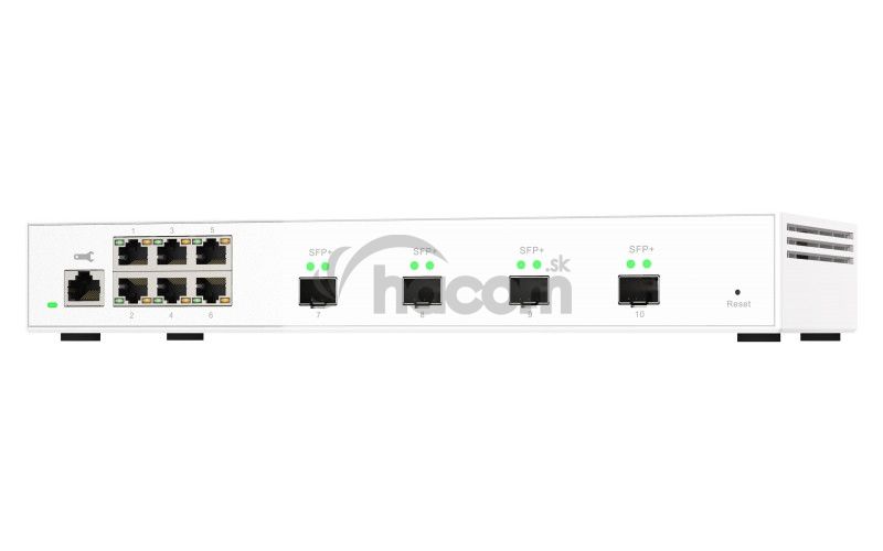 - QNAP riadený switch QSW-M2106-4S (6x 2,5GbE RJ45 a 4x 10GbE SFP+) QSW-M2106-4S