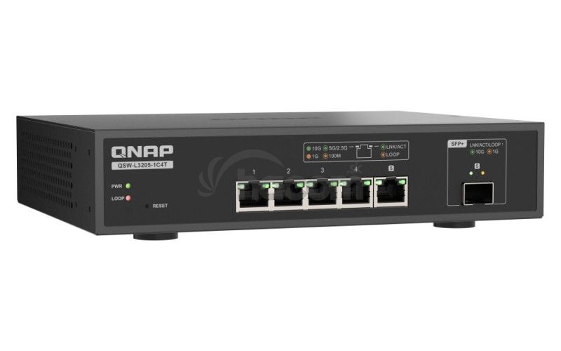 - QNAP switch QSW-L3205-1C4T (4x 10GbE port, 1x 10G SFP+/NBASE-T Combo, Lite Managed) QSW-L3205-1C4T