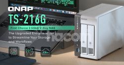 - QNAP TS-216G (4core 2,0 GHz + NPU, 4 GB RAM, 2x SATA, 1x GbE, 1x 2,5 GbE, 2x USB 2.0, 1x USB 3.2) TS-216G