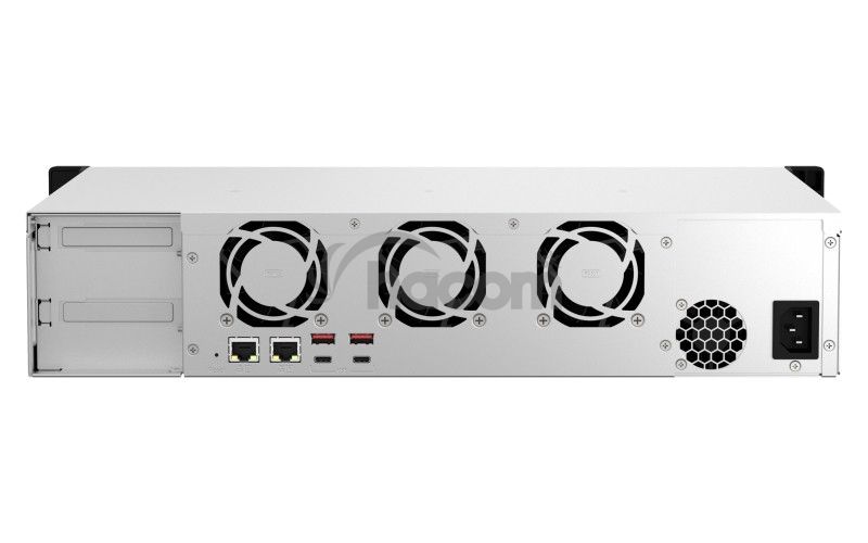 Kompaktné 2U zariadenie TS-873AeU pre montáž do racku kombinuje štvorjadrový/osemvláknový procesor AMD Ryzen V1500B s frekvenciou 2,2 GHz a duálne pripojenie 2,5 GbE v jednom šasi. Oproti predchádzajúcej generácii je zariadenie TS-873AeU rozšírené o dva porty M.2 PCIe Gen3 x 1 na využitie NVMe SSD cache alebo Edge TPU na rozpoznávanie obrazu pomocou umelej inteligencie. Vďaka špičkovému hardvéru integrovanému s komplexnými softvérovými riešeniami je model TS-873AeU vynikajúcou voľbou pre tých, ktorí majú aplikácie a úlohy náročné na zdroje, ako sú virtuálne počítače alebo intenzívny prístup viacerých užívateľov. Priestorovo efektívna konštrukcia s malou hĺbkou umožňuje jednoduchú inštaláciu do malých multimediálnych skríň alebo miest s rozsiahlou kabelážou.