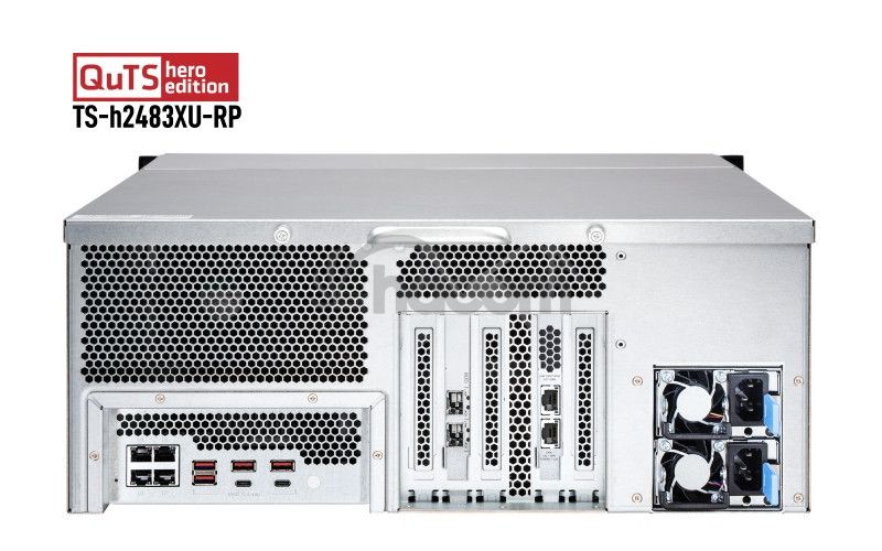 Zariadenie NAS TS-h2483XU-RP so systémom QuTS hero má procesor Intel Xeon E procesor s pamäťou až 128 GB DDR4 Error Correcting Code (ECC) a ponúka výkon na úrovni servera s vysokou mierou spoľahlivosti. Zariadenie TS-h2483XU-RP využíva operačný systém QuTS hero na báze ZFS a podporuje takmer neobmedzený počet snímok, SnapSync v reálnom čase, blokovú inline deduplikáciu dát a inline kompresiu dát. TS-h2483XU-RP pomôže vášmu podniku dosiahnuť spoľahlivý výkon na úrovni služieb, či už ide o kritický súborový server, virtualizačný server, VDI, kolaboratívnu editáciu videí alebo efektívne aplikácie pre zálohovanie a obnovu.