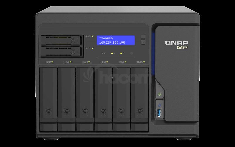 - QNAP TS-h886-D1622-16G (Xeon 3,2GHz, ZFS, 16GB ECC RAM, 6x3,5 "+ 2x 2,5", 2xPCIe, 4x2,5GbE, 2xM.2 NVMe) TS-h886-D1622-16G
