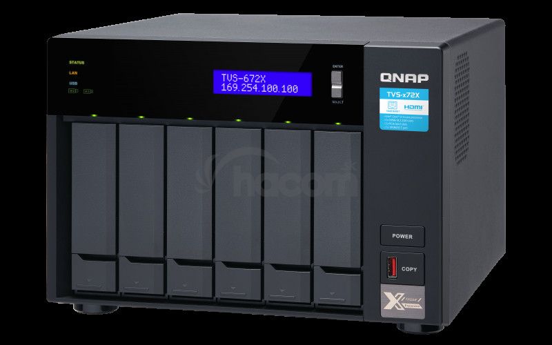 - QNAP TVS-672X-i3-8G (3,1GHz / 8GB RAM / 6x SATA / 2x M.2 NVMe slot / 1x HDMI 4K / 2x GbE / 1x 10GbE) TVS-672X-i3-8G