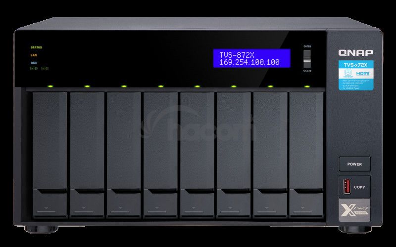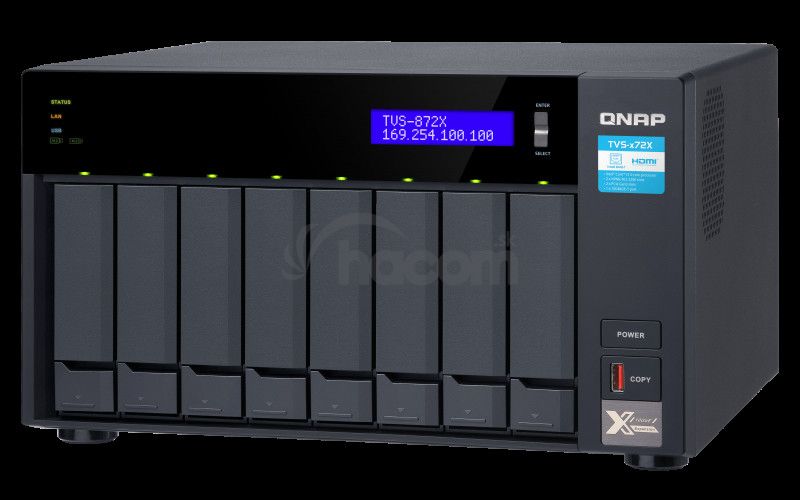 - QNAP TVS-872X-i3-8G (3,1GHz / 8GB RAM / 8x SATA / 2x M.2 NVMe slot / 1x HDMI 4K / 2x GbE / 1x 10GbE) TVS-872X-i3-8G