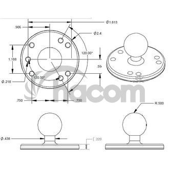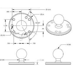 RAM-B-202U kruhový adaptér / úchyt na rovné povrchy s 1" čapom. Adaptér má priemer 6,35 cm a má predvŕtaných 7 dier, z toho 4 podľa priemyselného vzoru dier AMPS.Použitie:
