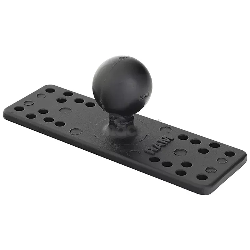 RAM-111B držiak pre sonary a echoloty Lowrance, Humminbird, Fish Finder, Garmin, Eagle atď. S 1,5 "čapom. Obdĺžniková doštička držiaka má rozmery 15,8 x 5 cm a obsahuje rôzne kombinácie převrtaných dier tak aby do nich bolo možné pripevniť veľa rôznych prístrojov vrátane námorných a lodných GPS, sonarov, Echoloty, CB a Ham rádiostaníc, konzol Gimbal atď.použitie: