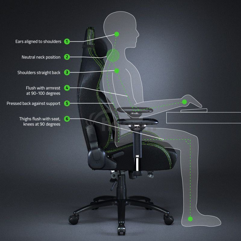 Razer Iskur - ergonomická herná stolička navrhnutá pre perfektné držanie tela.Na rozdiel od väčšiny herných stoličiek, ktoré majú bedrové vankúše, ktoré sa časom posúvajú, alebo pevné podpery, ktoré nie je možné nastaviť, poskytuje Razer Iskur úplnú oporu dolnej časti chrbta so vstavanou, plne nastaviteľnou bedrovou krivkou, ktorá sa tesne prispôsobuje vašej chrbtici - čo zaisťuje ideálne držanie tela pre maximálne pohodlie pri hraní.