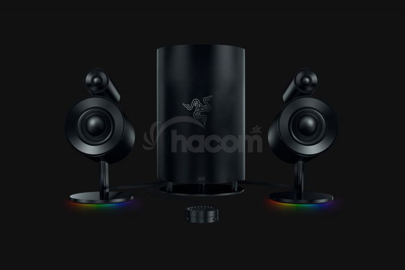 Razer Nommo Pro je vybaven prémiovými komponenty, jako jsou ovladače o délce 3 palce pokryté vlákny Dupont ™ Kevlar® a hedvábným tkanými tweeter reproduktory, které pak na THX vyladili inženýři, aby se ukázal jejich plný potenciál. To vše zaručuje, že slyšíte plný rozsah - velkolepý čistý zvuk, který je ideální pro všechny druhy zvukové zábavy.