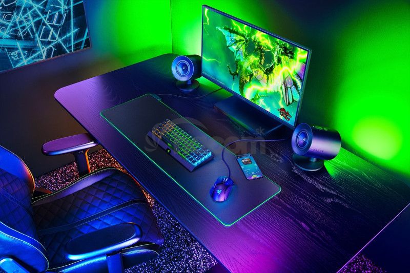 2.1 širokopásmové herné PC reproduktory s káblovým subwooferom*Zadná projekcia osvetlenia Razer Chroma™ RGB