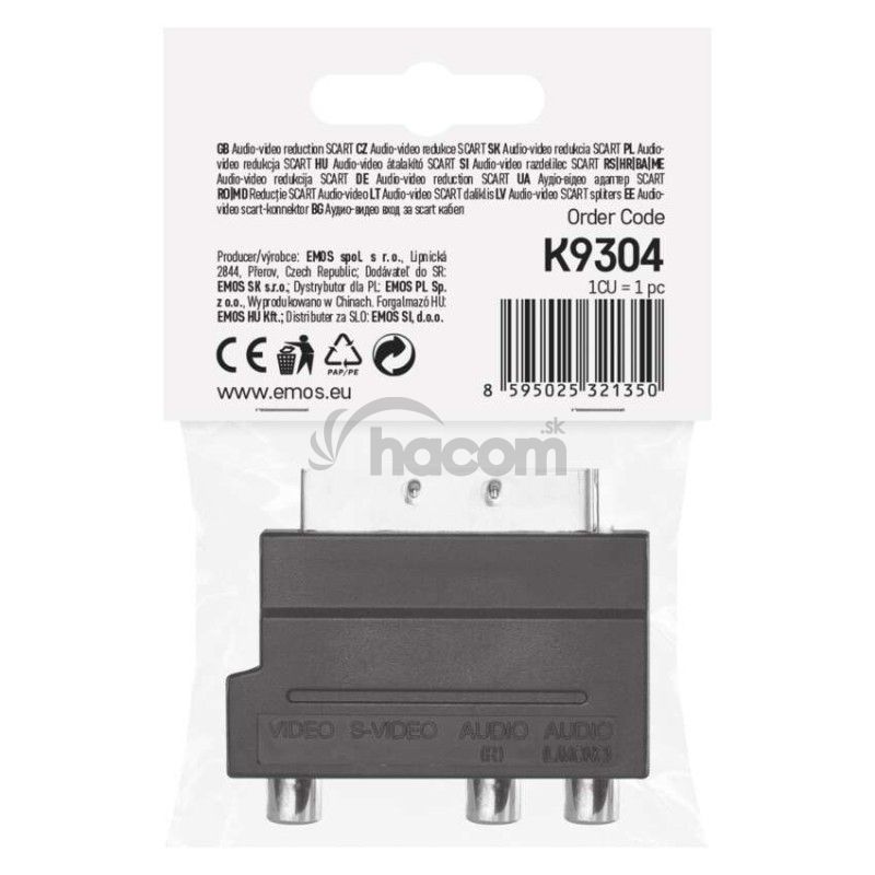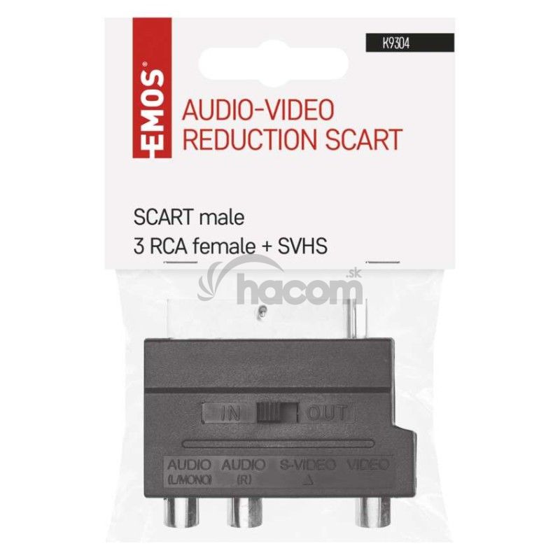 - Redukcia SCART na 3× CINCH + SVHS adaptér K9304