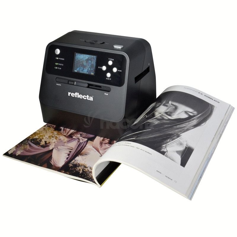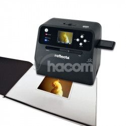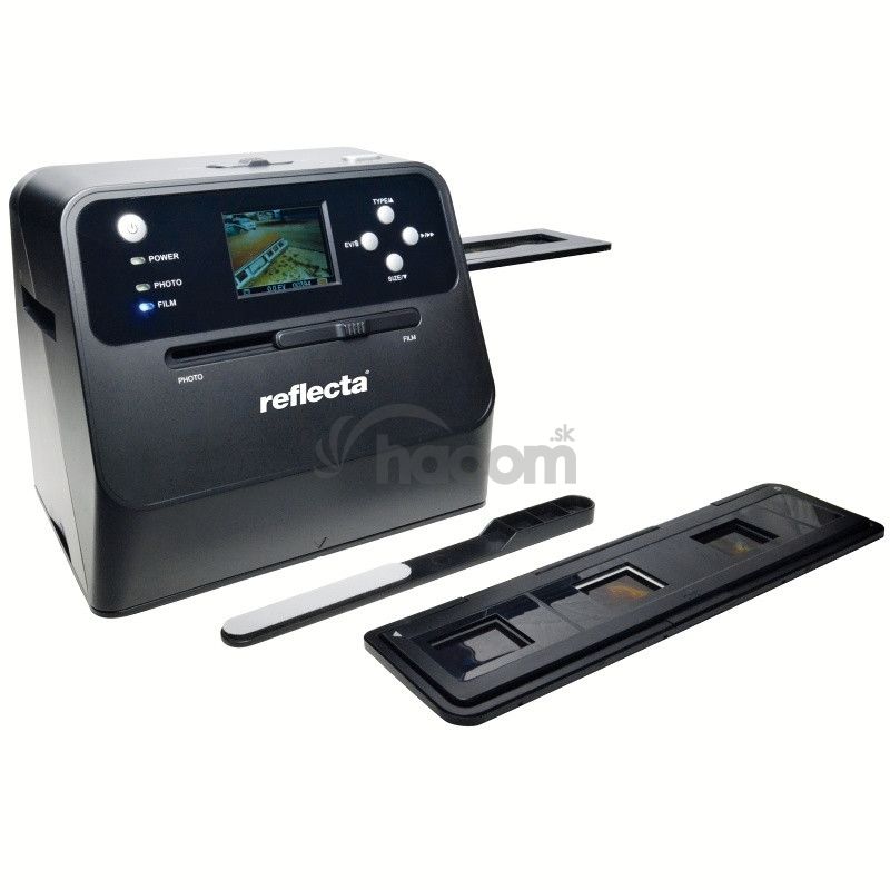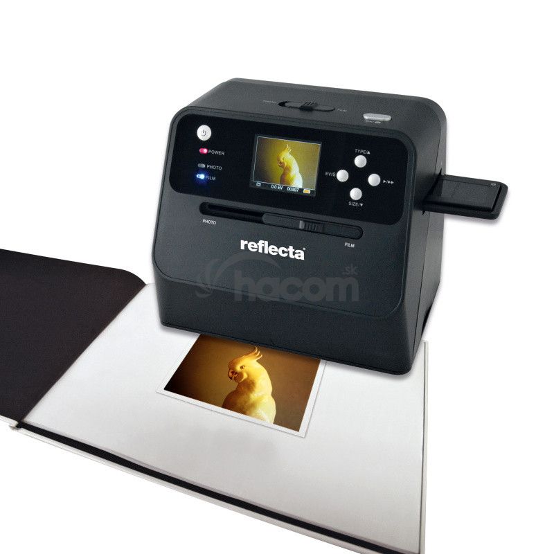 Kombinovaný filmový skener CMOS 14Mpx s možnosťou skenovania fotografie až 9,4 x 14,1 cm priamo z albumov alebo časopisov položením na snímanú plochu, ktorá je nasvetlená LED diódami. Farebný 2,4" LCD monitor, Li-Ion akumulátor a slot SDHC pre prácu aj bez PC. Manuálny posun 3 diarámčekov (max 3,2mm hrúbka), 6 políčok filmu (negatív/pozitív), nastaviteľné osvetlenie 24+3 LED, rýchly 2s sken, rozlíšenie pri skenovaní filmu 4416 x 2944 Px, možnosť použitia SDHC kariet max 32GB, zdroj energie Li-Ion akumulátor 3,7 V/1050mAh alebo sieťový zdroj 5V/1A, USB 2. Rozmery 18x21x16cm, hmotnosť 1050g. a kinofilmu (110/126 film na objednanie), sieťový zdroj, USB kábel, čistiaci nástroj, Li-Ion akumulátor a návod.