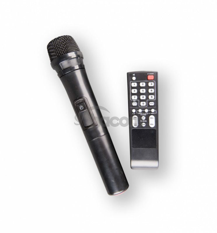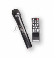 * V balení nájdete - bezdrôtový mikrofón, diaľkový ovládač a napájací adaptér