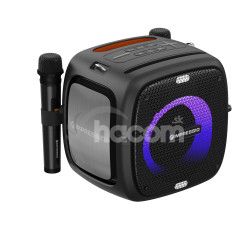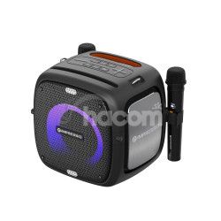 Obsah balenia: reproduktor, 2x bezdrôtový mikrofón, kábel USB A - USB C, kábel AUX jack 3,5mm stereo, popruh na rameno, 4x AA batérie, manuál