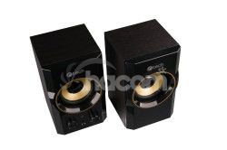 Drevené reproduktory SPK-11 v elegantnom čierno-zlatom prevedení vás prekvapí svojím hlasným a čistým zvukom o výkone 5W RMS. Sú skvelou voľbou nielen pre tých, ktorým už nestačí zabudované reproduktory v ich notebooku. Nabíjané sú zo štandardného USB portu a ponúknu tiež ovládanie na prednom paneli a výstup na slúchadlá.špecifikácie
