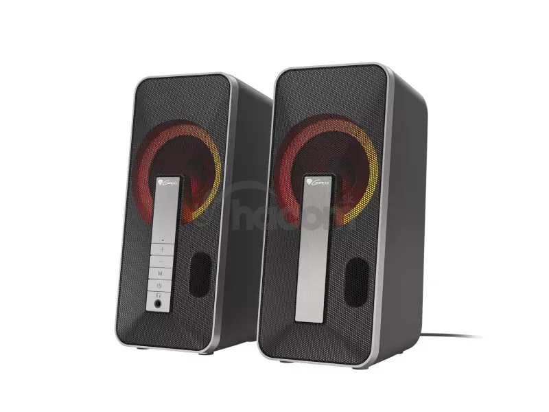 To, čo tieto reproduktory odlišuje, je jedinečný dizajn v kombinácii s očarujúcim efektom RGB podsvietenie. Vďaka kombinácii čierneho matného krytu so strieborným brúseným predným panelom budú reproduktory vyzerať skvele na každom hernom stole.