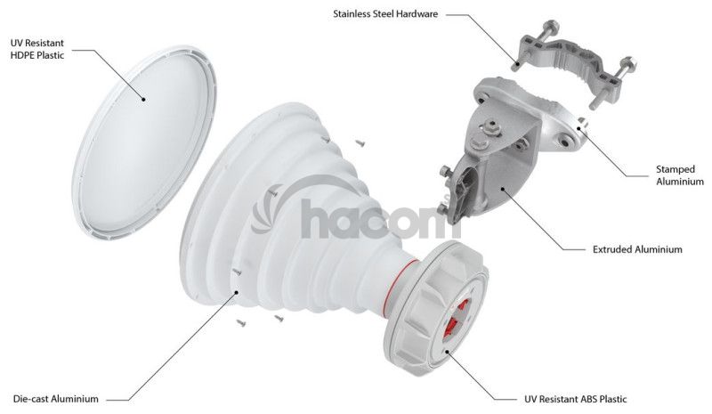 Symetrické sektorové antény sú vytvorené pomocou pevnej kovovej konštrukcie. Pri výrobe boli použité tie najlepšie dostupné materiály: odliatky z hliníka, vysoko kvalitné ABS plast a nerezová oceľ.