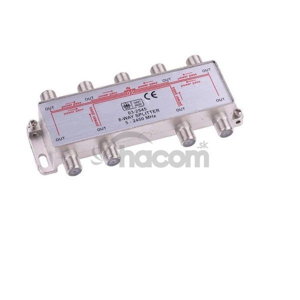 Rozbočovač F-konektorový. 1x vstup, 8x výstup. 5-2400 MHz.