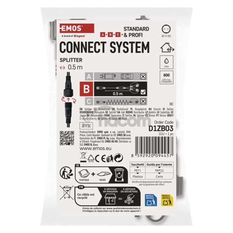 - Rozbočovač pre spojovacie reťaze Standard čierny, 0,5 m, vonkajší aj vnútorný D1ZB03