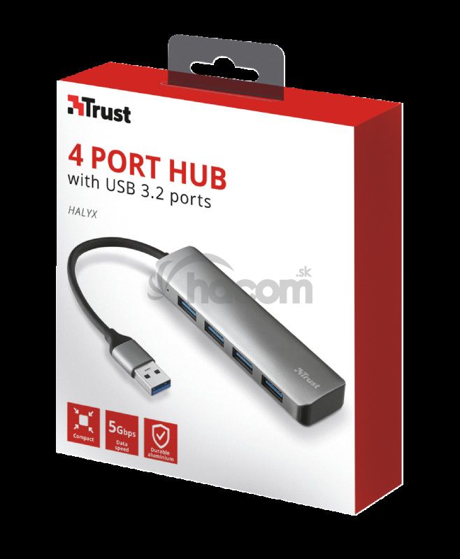 Odkaz na web výrobcu: https://www.trust.com/en/product/23327-halyx-aluminium-4-port-usb-3-2-hub