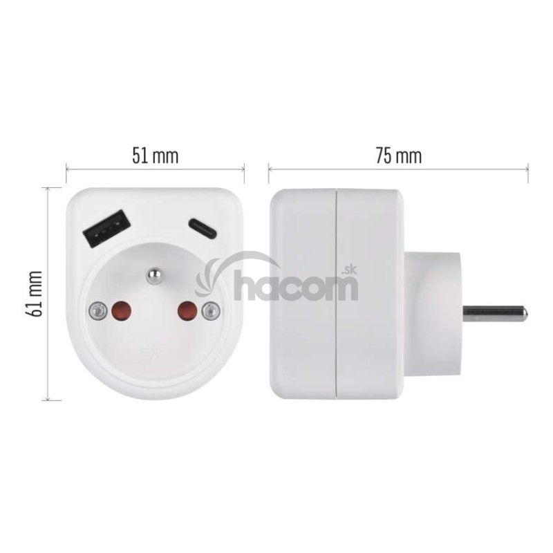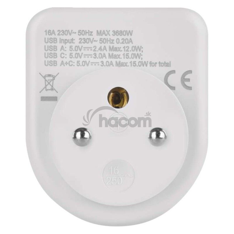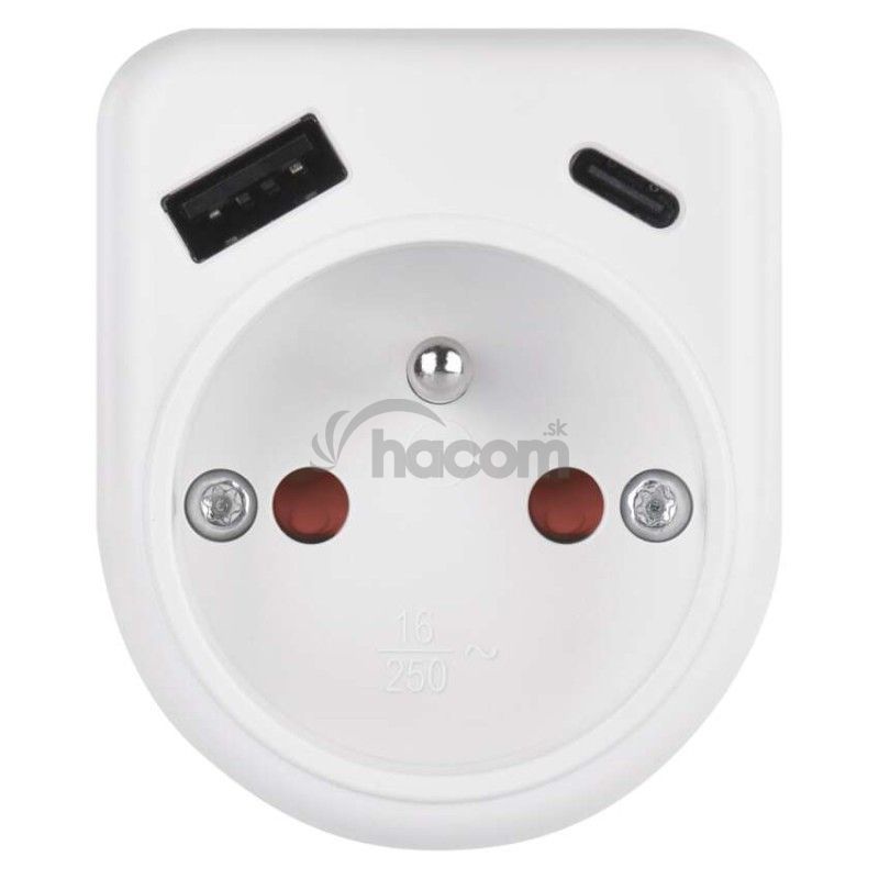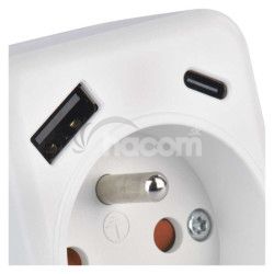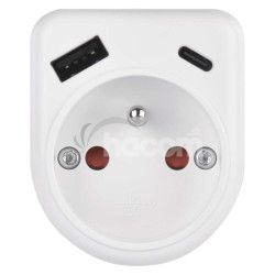 - Rozbočovacia zásuvka 1×, 1×USB-A+1×USB-C, biela P0074