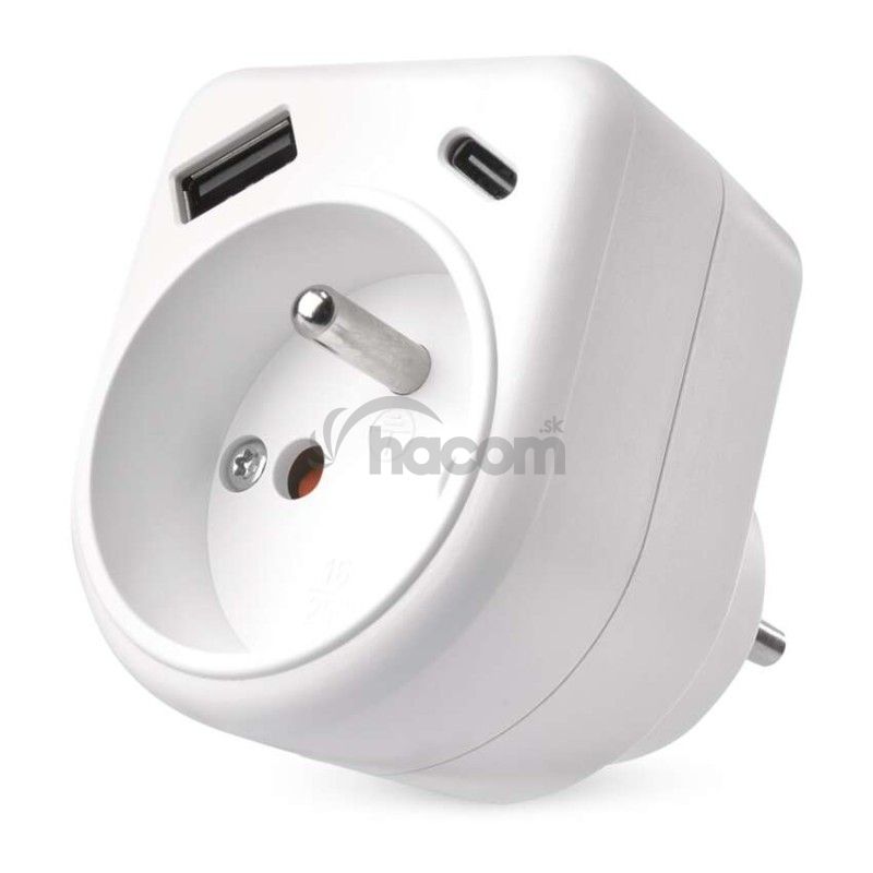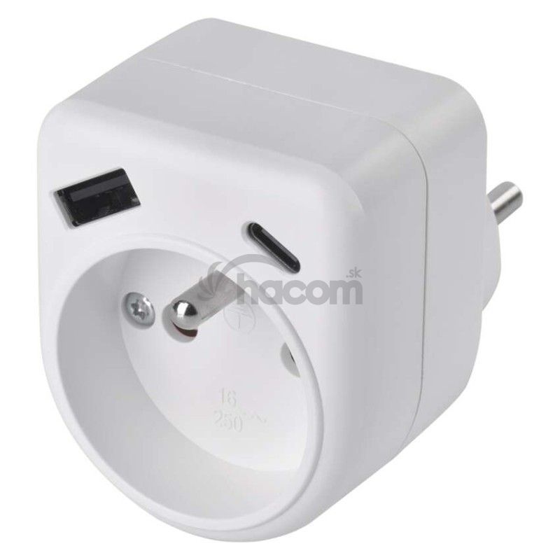 Rozbočovacia zásuvka 1×, 1×USB-A+1×USB-C, biela P0074