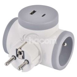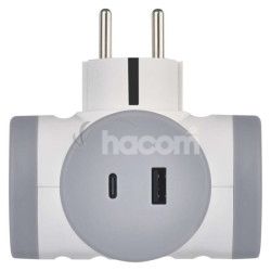 - Rozbočovacia zásuvka 2×, 1×USB-A+1×USB-C, bielo-sivá P0076PD