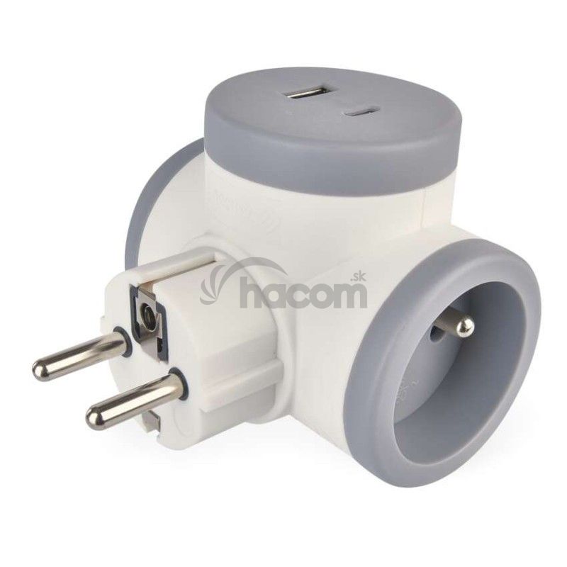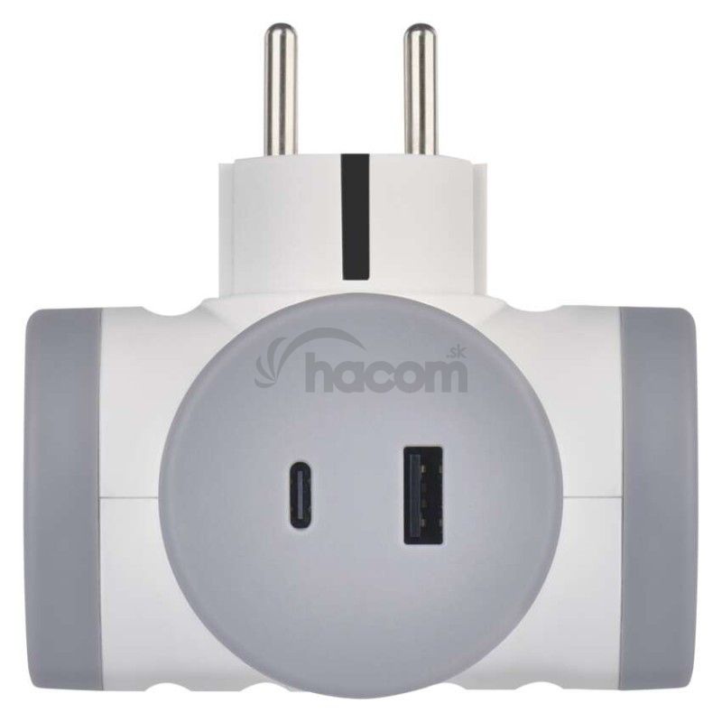 Rozbočovacia zásuvka 2×, 1×USB-A+1×USB-C, bielo-sivá P0076PD