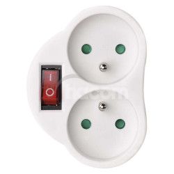 Rozbočovacia zásuvka 2× guľatá s vypínačom, biela P0062