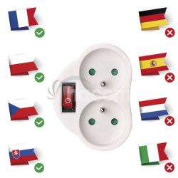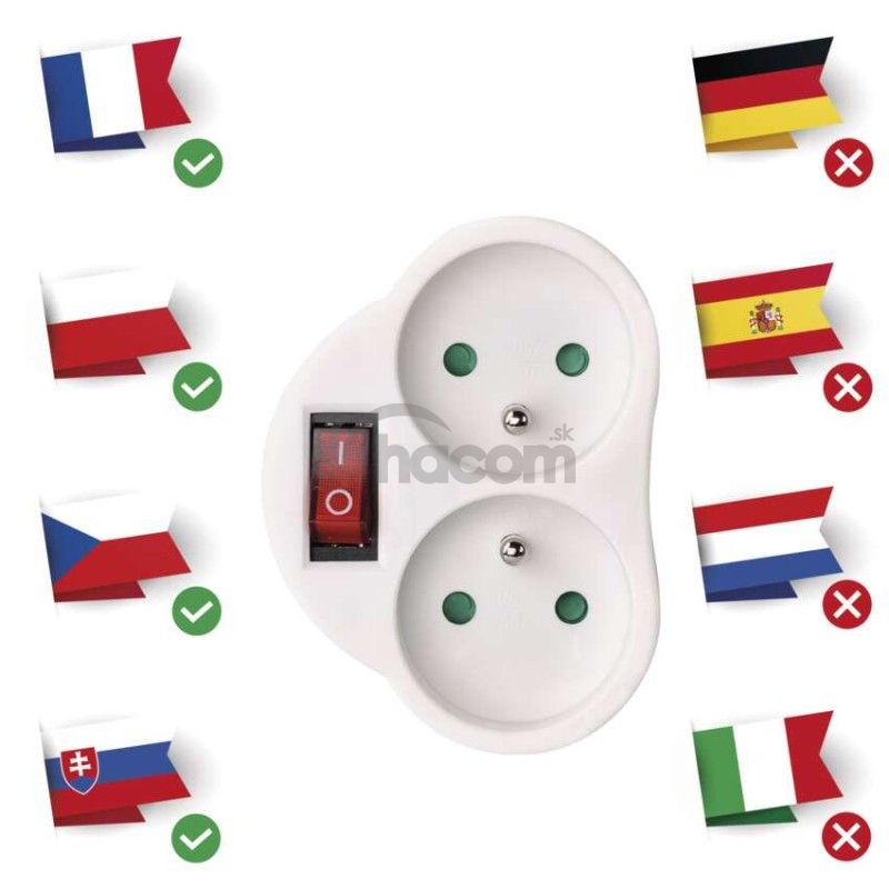 | produkt | rozbočovacia zásuvka 2× s vypínačom |