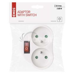 - Rozbočovacia zásuvka 2× guľatá s vypínačom, biela P0062
