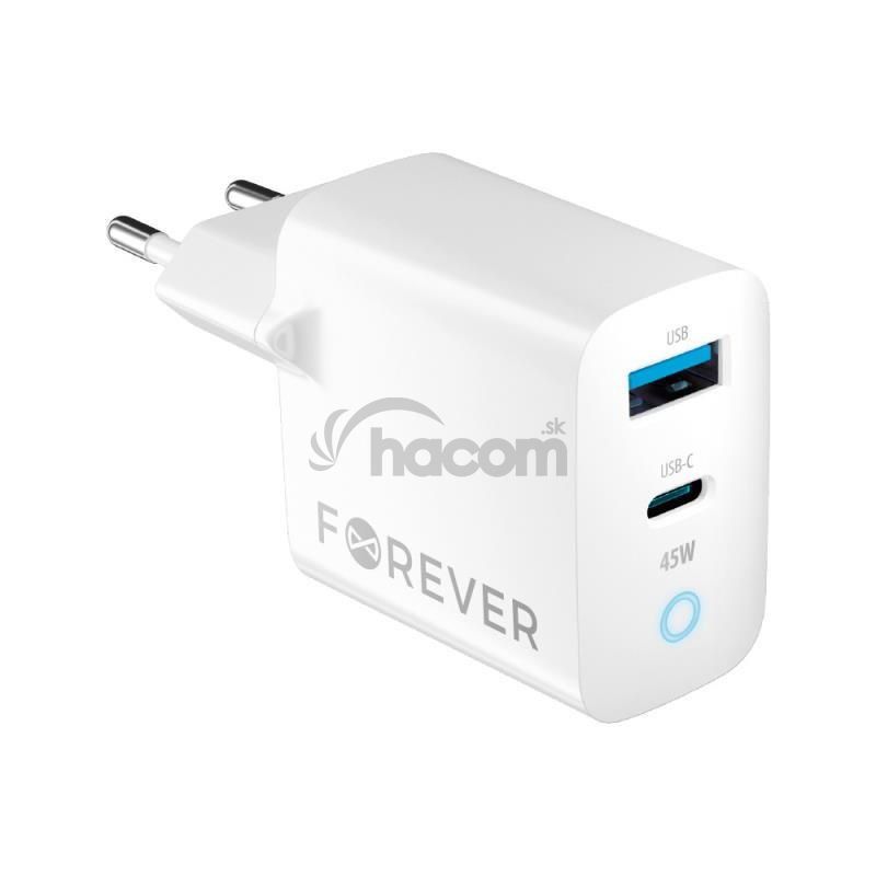 - Rýchlonabíjačka do siete Forever GaN TC-06-45AC GaN PD QC 1x USB-C 1x USB 45W biela GSM171396
