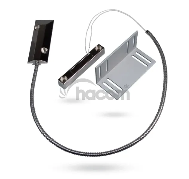 Prejazdový kovový detektor aj na kovové dvere s prívodom v pancierovom kryte, 106 x 38 x 10 mm, pracovná vzdialenosť max. 75 mm.